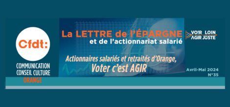 Nov. 2024 - C'est AGIR pour exiger un 2ème administrateur représentant plus de 133 000 actionnaires salariés, anciens salariés et retraités pour assurer une pluralité des intérêts au Conseil d’Administration d’Orange.