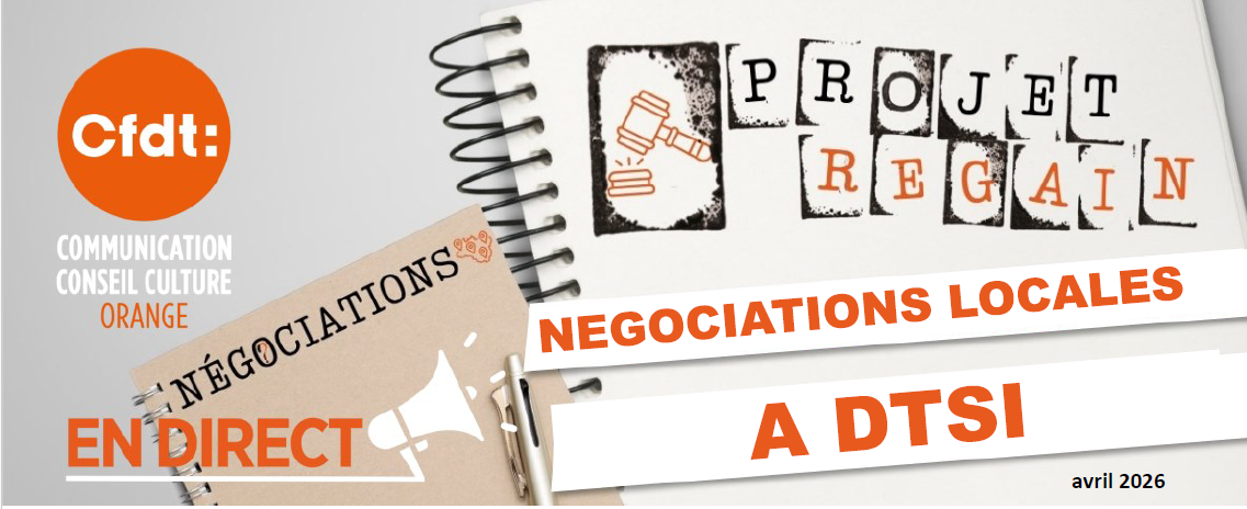 Avril 2026 - Regain, des gains pour l’entreprise, pas pour les salariés ! Négociations locales à DTSI Le projet Regain va toucher des milliers de salariés. Pour la CFDT il était essentiel d’obtenir des garanties pour que les femmes et les hommes puissent continuer à exercer leur métier dans de bonnes conditions. Devant le refus de l’entreprise d’ouvrir des négociations, la CFDT avait saisi la justice. En première instance le juge nous avait donné raison par décision du 6 janvier 2026 et avait astreint l’entreprise à les ouvrir.