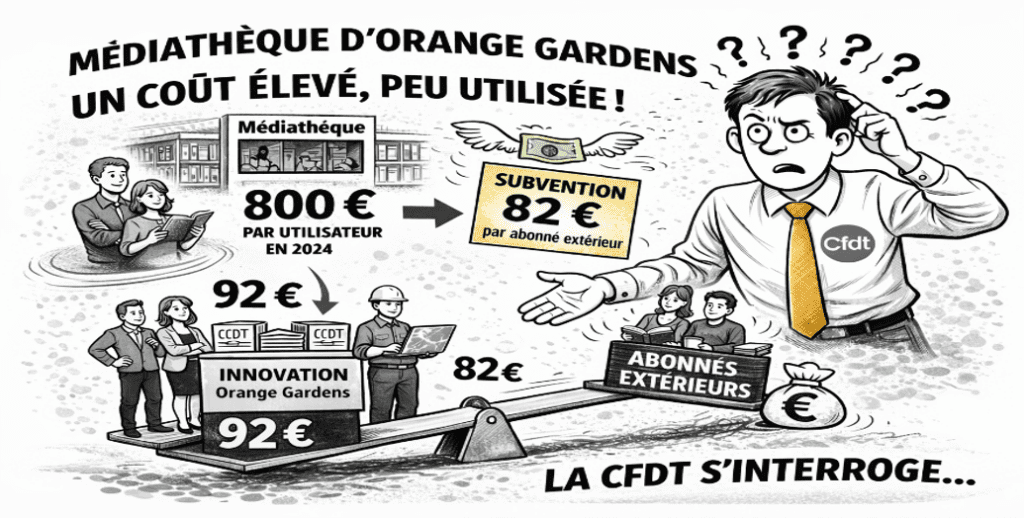 En effet, pour la CFDT, dans le contexte de campus multi-entités qui se généralisent, cette décision revient à faire porter sur le seul budget ASC d’Orange Innovation le financement de médiathèques désormais ouvertes à tous, sans contribution significative des autres CSE.